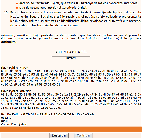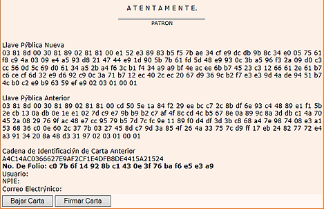 15. Se descarga la carta, se firma con el certificado nuevo y la clave nueva.